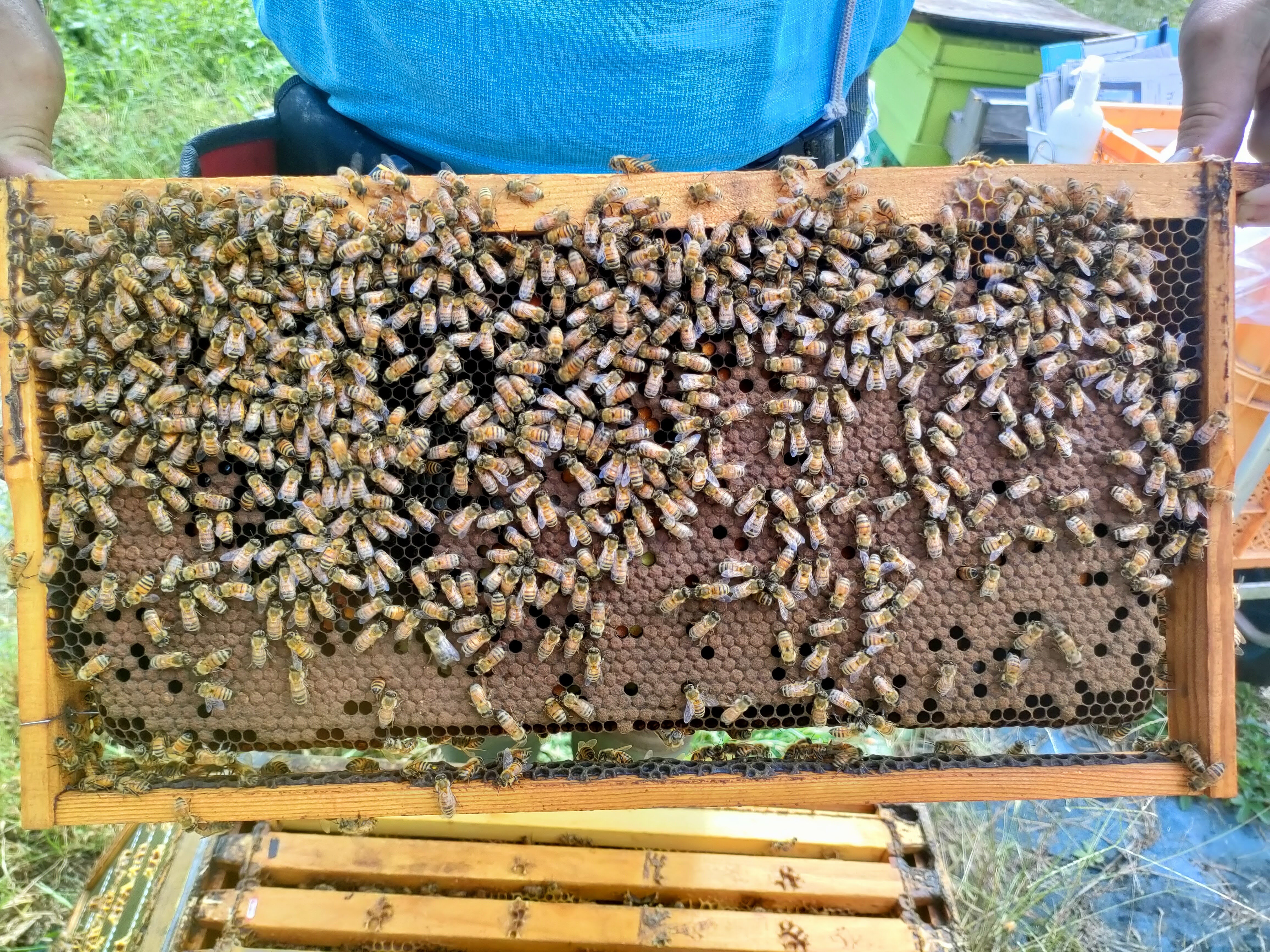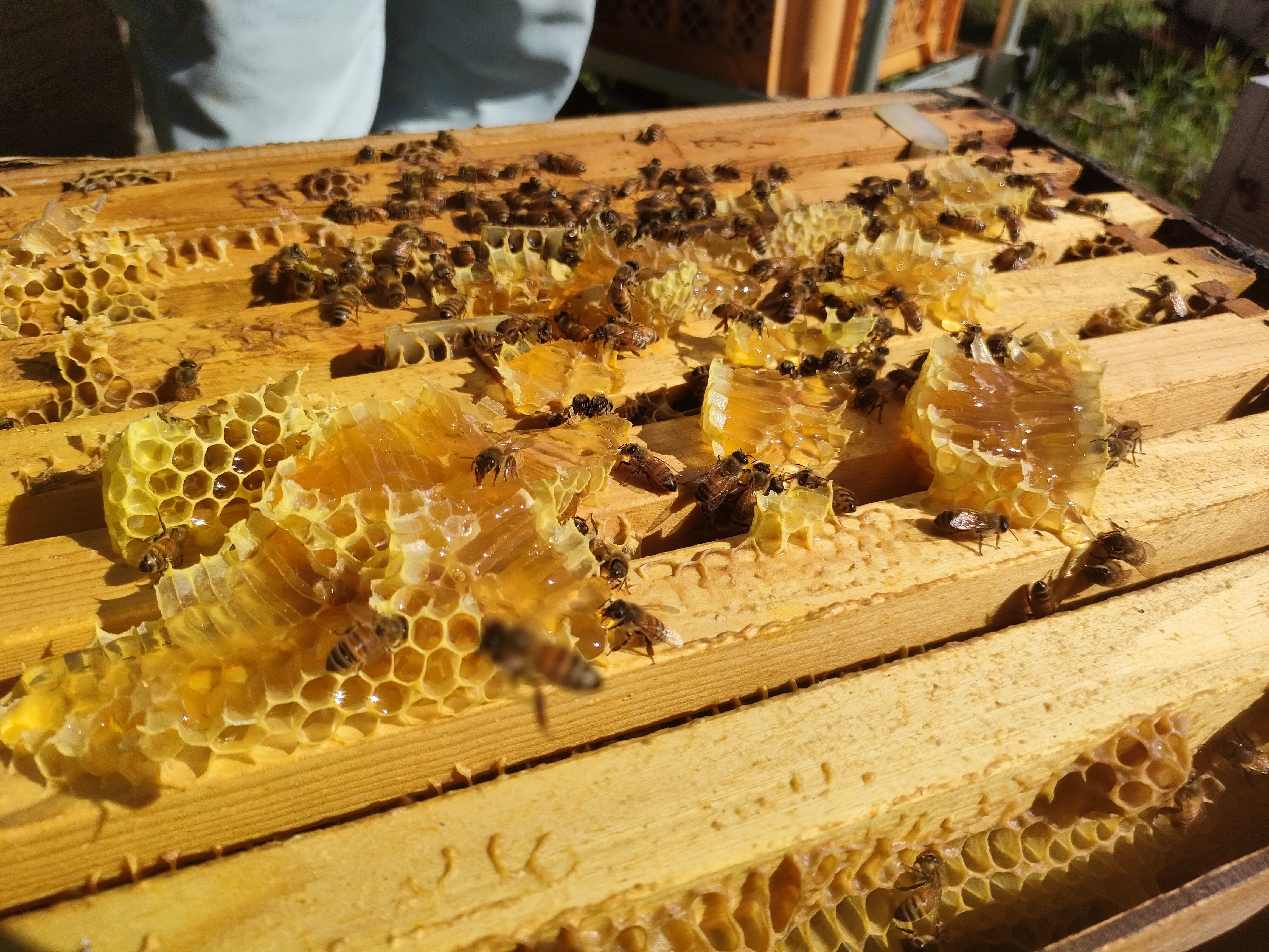 見回りの後は内検。アピバールを撤去しながら、ドローンドロップと貯蜜の確認、給餌を行った。