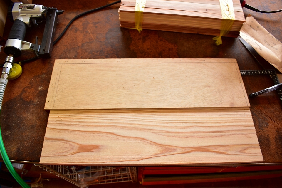 今日も蓋作り。枠に天板2枚を取り付けて蓋は完成。