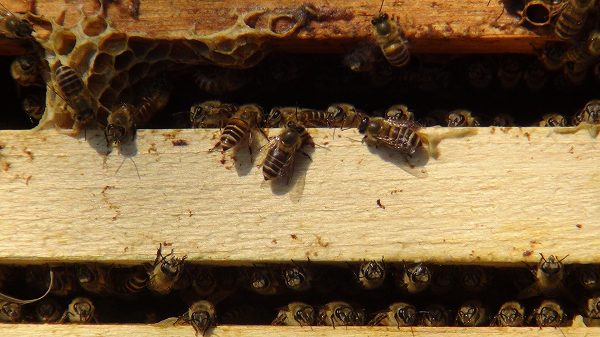先月女王蜂が失踪してしまった巣箱で王台から新しい女王蜂が生まれ、交尾飛行にせいこうしたので喜んでいましたが、新しい女王蜂が失踪していることに昨日気がつきました。
