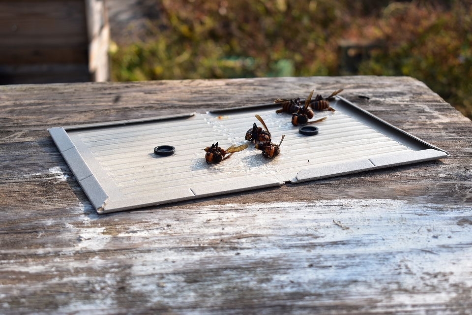 10月31日~11月8日まで毎日大スズメバチの襲撃が続いている。見回りと捕殺器のお陰で大きな被害は出ていないが、毎日3回(休みは2回)の見回りが欠かせない。