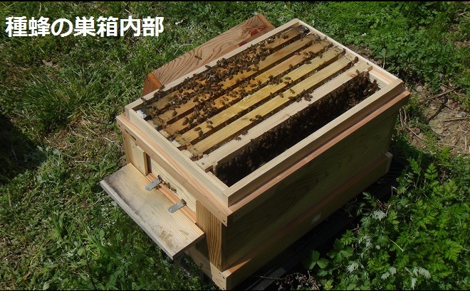 蜂が多く、燻煙器で避けながらの釘抜きに時間がかかりました。すでに、手の平サイズの無駄巣が3枚。産卵も有りもったいないと思いながら除去。元気な群だと感じました。新巣枠に産卵確認、女王確認、新聞屑等の掃除をして、餌箱、巣礎を1枚追加して内検を終えました。大切に育てます。ありがとうございました。